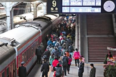 新京報訊 昨天2015年春運大幕正式開啟,全國將有28億人次春運大軍開始“遷徙”。當天32萬人乘火車離開北京,相較去年下降5萬人。北京鐵路局預測,出行高峰期將在2月15日(臘月二十七)至17日(臘月二十九)到來,北京站、北京西站、北京南站將開啟所有服務窗口為乘客提供服務。