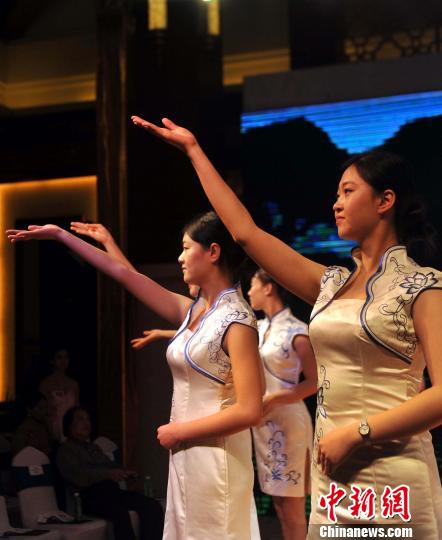 禮儀小姐在發(fā)布會(huì)上展示禮儀文化。 蔣雪林 攝