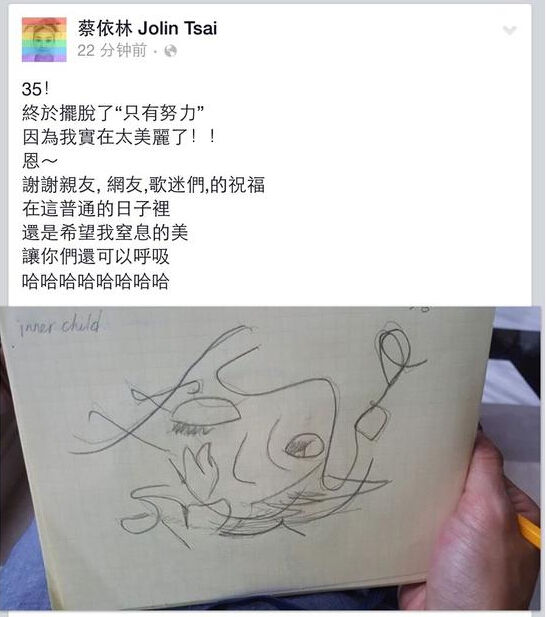 鳳凰娛樂訊 9月15日是蔡依林35歲的生日,她在臉書上更新狀態(tài),曬出了一張簡單的自畫像為自己慶生。