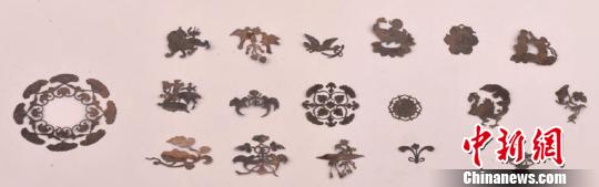 墓中出土的漆盒銀箔花飾!≠Y料圖 攝