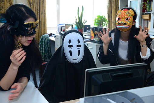 活動主辦方宋城在接受采訪時說:“今天我們倡導員工戴面具上班,是景區秋季面具節活動的一部分,我們希望通過這樣的形式,為員工恢復工作與生活之間的平衡發揮作用,減少工作壓力。”