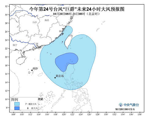 中央氣象臺預(yù)計,20日8時至21日8時,受"巨爵"和冷空氣的共同影響,臺灣海峽、臺灣以東洋面、巴士海峽、南海東北部和中東部海域?qū)⒂?~8級、陣風(fēng)9~10級的大風(fēng),"巨爵"中心經(jīng)過的附近海域風(fēng)力將有9級、陣風(fēng)可達(dá)10~11級,東海南部海域?qū)⒂?~7級、陣風(fēng)8級的東北風(fēng),南海東南部海域?qū)⒂?~6級西北風(fēng)。另外,渤海將有5~7級、陣風(fēng)8級的東北風(fēng)。