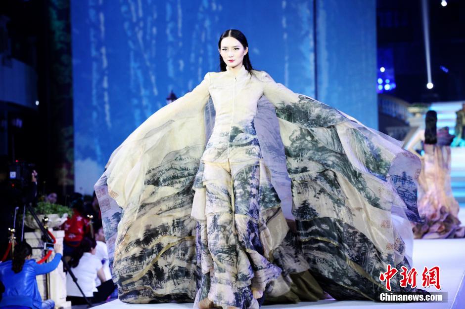 10月20日晚,2015成都時裝周在彭州“時尚小鎮”開幕,數十位名模與佳麗身著個性獨特、色彩鮮明、時尚靚麗的時裝,展示中韓兩國著名時裝設計師的時裝作品,這些時裝作品極具中國傳統風格,通過佳麗激情演繹,讓觀眾感受到一種獨具魅力的“中國美”。據了解,本屆成都時裝周持續5天,中韓兩國著名時裝設計師將帶來近30場“時裝品牌走秀”和“新品發布”。彭州正在打造中國西部家紡服裝之都和全球著名的國際時尚中心。 高寒 攝