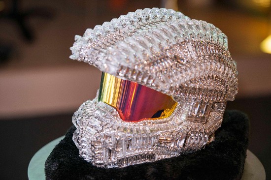 Xbox最后一戰士官長水晶頭盔使用超過3萬顆施華洛世奇水晶制作而成,造價約2萬美金,是真的可以戴的,眼罩部分是反射式太陽眼鏡(圖/Xbox提供)