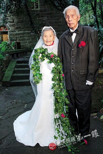 昨日上午,重慶晚報2013年報道的世紀(jì)情書作者、現(xiàn)年97歲的抗戰(zhàn)老兵曹越華與妻子王德懿相約北溫泉——1945年他們在這里拍下第一張婚紗照,70年后的鉑金婚紀(jì)念日,他們要在同一地點(diǎn)再次攜手,穿上禮服、婚紗,紀(jì)念70年的世紀(jì)情緣。