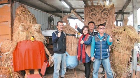理事長(zhǎng)劉宥慈表示,他們請(qǐng)農(nóng)友保留原始的稻稈,不要切碎,才能綁出各式各樣造型的稻草玩偶。