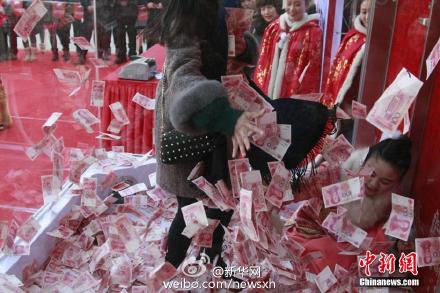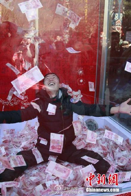 杭州景區給游客發獎 百萬大鈔滿天飛