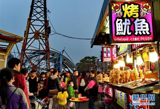 3月6日,游客在臺灣淡水夜市游玩。夜幕降臨,臺灣淡水夜市人潮涌動,名目繁多的當地特色小吃吸引了四面八方的游客前來品嘗。 新華社記者 張國俊 攝