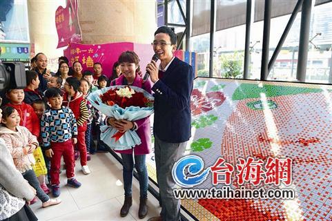 林育城事先“騙”小傅:“好思多”魔方工作室周日在外圖書城開一個公益講座。當小傅來到“講座”現場時,幕布迅速揭開,她開心得直捂嘴。魔方墻前,林育城手持鮮花邁步走來,他迎來了人生中最幸福的時刻……