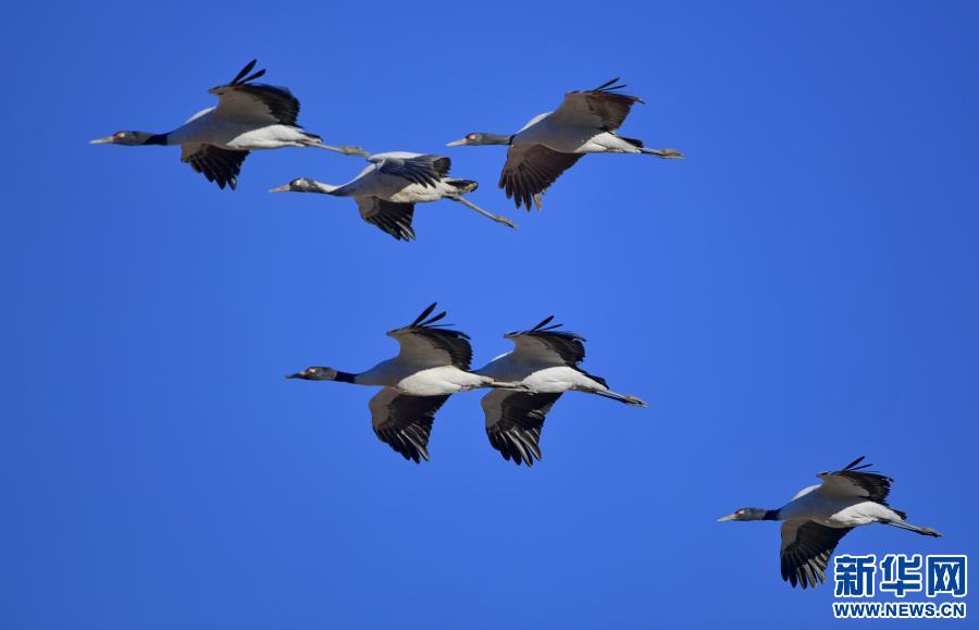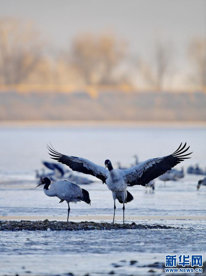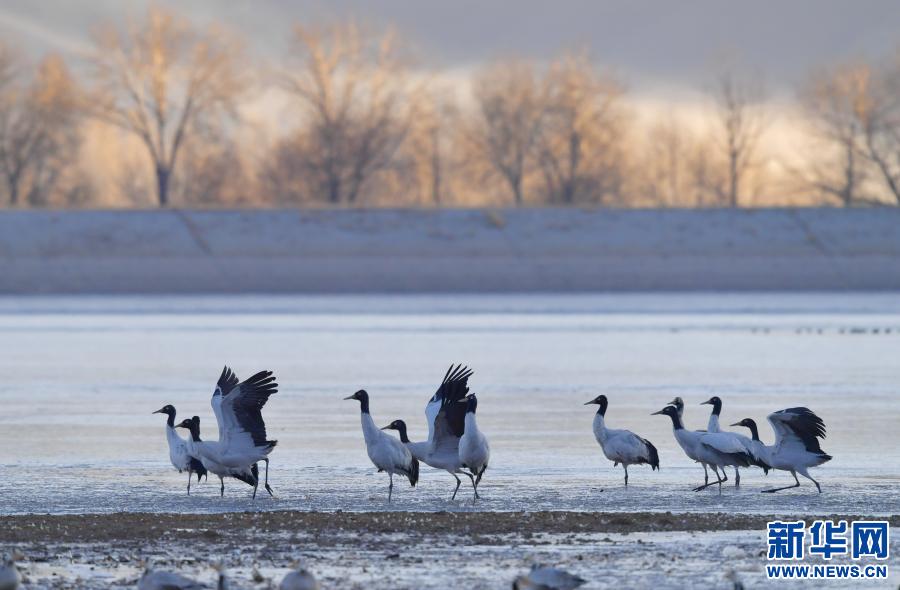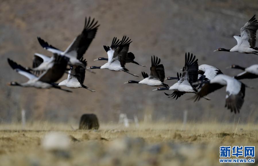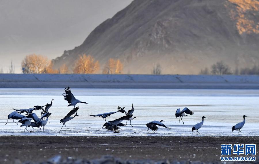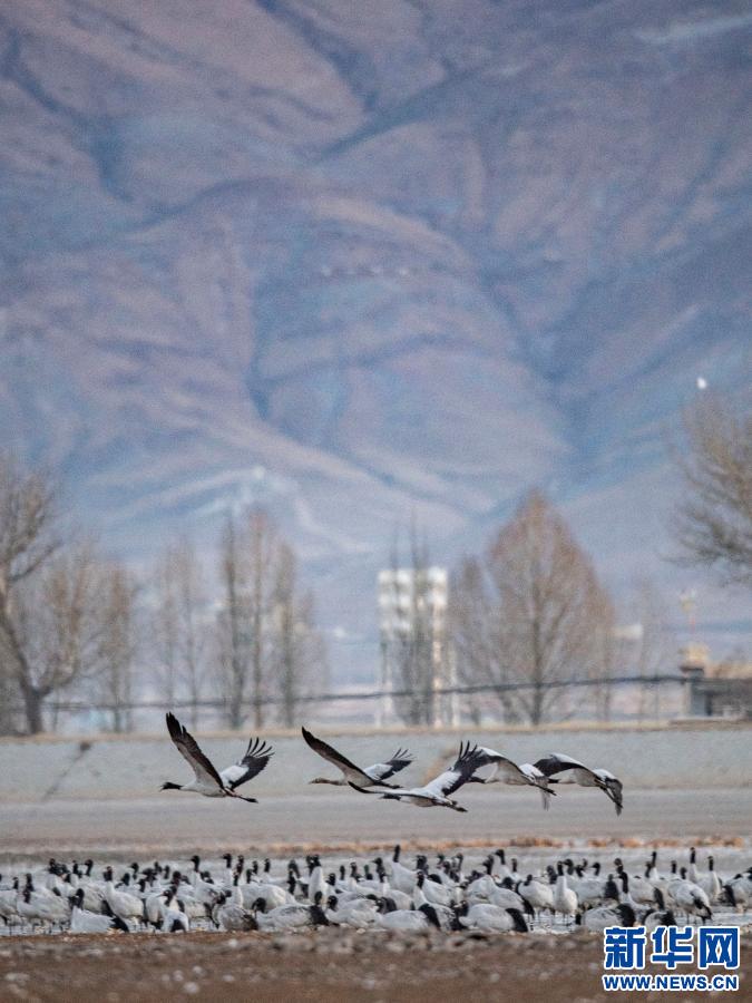 冬日,大批黑頸鶴在西藏拉薩市林周縣境內棲息、覓食。 林周縣黑頸鶴自然保護區建立于1993年,2003年被設立為國家級自然保護區,是雅魯藏布江中游自然保護區的核心部分,在每年的11月底至12月初,這里便會迎來成群的黑頸鶴過冬。