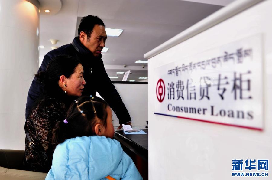 顧客在中國銀行西藏分行辦理貸款業務(2016年2月19日攝)。新華社記者 晉美多吉 攝