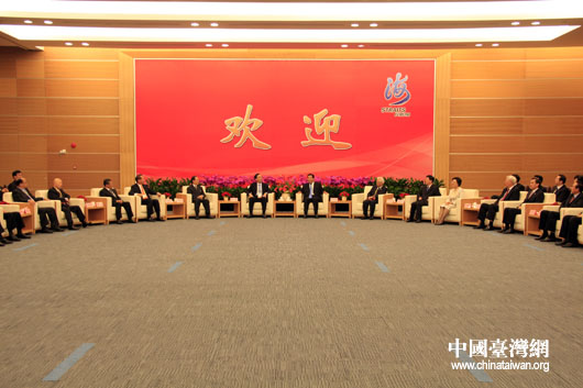 中共中央政治局常委、全國政協主席賈慶林會見出席首屆海峽論壇的兩岸各界人士。(中國臺灣網 鐘寶華 攝)