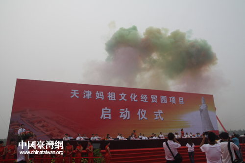 隨后,張克輝會長鄭重的宣布:“天津媽祖文化經(jīng)貿(mào)園項目正式啟動”。余音未了,全場立即煙花齊放、禮炮齊鳴。