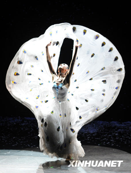 當晚,由大陸著名舞蹈家楊麗萍領銜主演的大型原生態歌舞集《云南映象》在臺北“小巨蛋”體育館上演!对颇嫌诚蟆啡w演職人員還籌集了15萬元人民幣為臺灣同胞賑災。新華社發(吳景騰 攝)