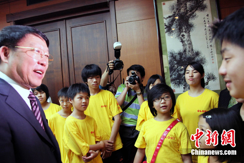 正在臺灣訪問的遼寧省常務副省長許衛國3日晚,在臺北看望了10位孤兒和單親家庭兒童。