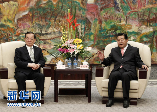 中共中央政治局常委、全國政協主席賈慶林9日下午在上海西郊賓館會見了中國國民黨榮譽主席連戰和夫人以及出席臺胞社團論壇的部分代表。