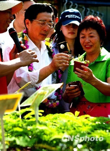 廣西自治區(qū)黨委書記郭聲琨,7月4日在臺灣彰化縣一家經(jīng)營花卉產(chǎn)業(yè)參訪。 中新社發(fā) 宋吉河 攝
