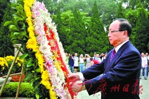 昨日,在廣州市政協(xié)主席林元和的陪同下,中國國民黨副主席蔣孝嚴到廣州黃花崗七十二烈士墓拜祭,并應(yīng)邀題字“浩氣長存”。蔣孝嚴表示,在辛亥革命100周年之際,來拜祭黃花崗七十二烈士墓是非常值得紀念的事情,影響深遠。