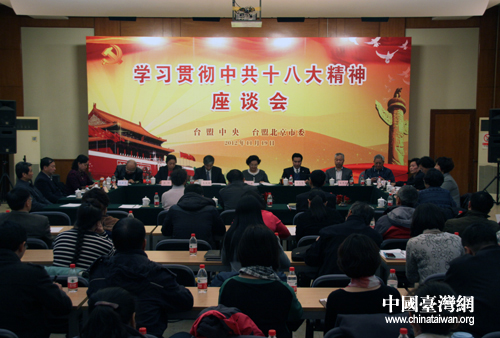 臺盟中央、臺盟北京市委11月19日下午在京聯(lián)合舉辦學(xué)習(xí)貫徹中共十八大精神座談會。(中國臺灣網(wǎng) 王怡然 攝)