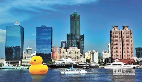 高雄版大黃鴨預定9月19日至10月20日在高雄港光榮碼頭展出。圖為臺媒合成照