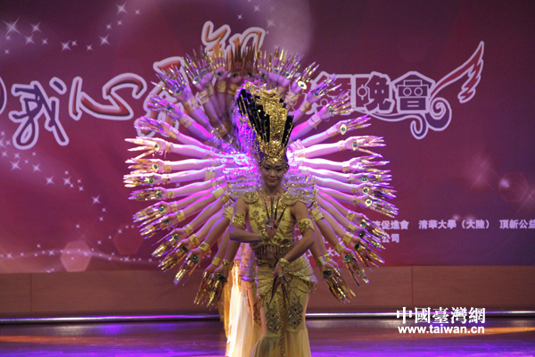 第六屆中華文化快車——北京心靈呼喚藝術團7日晚間在臺灣中國文化大學舉辦歌舞晚會,圖為演員們表演敦煌舞蹈《千手觀音》。(中國臺灣網記者 普燕) 第六屆中華文化快車——北京心靈呼喚藝術團7日晚間在臺灣中國文化大學舉辦歌舞晚會。