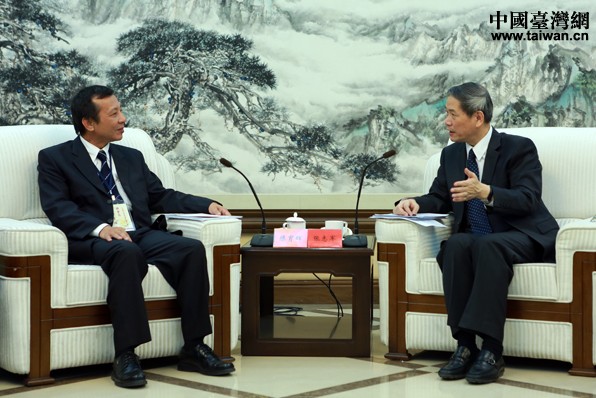 11月14日,中共中央臺辦、國務院臺辦主任張志軍在北京會見了臺南市里長會長聯(lián)合總會參訪團一行。