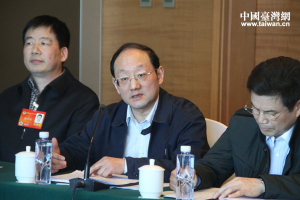 全國(guó)政協(xié)第十二屆二次會(huì)議的分組討論中,臺(tái)籍委員江利平正在發(fā)言。(中國(guó)臺(tái)灣網(wǎng) 張潔 攝)