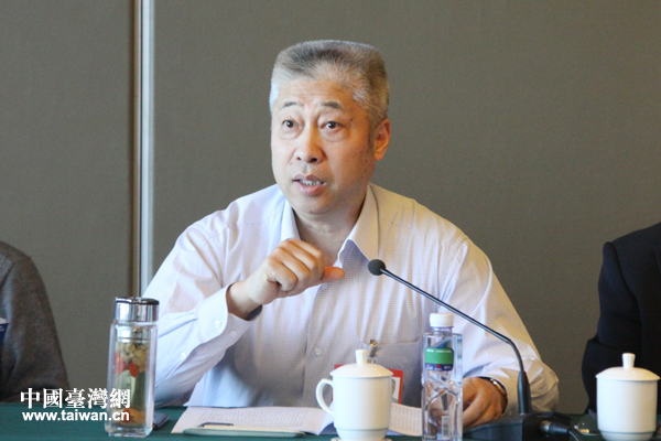 臺籍委員張澤熙在臺盟界別分組討論中,與眾委員分享自己關于互聯網金融的觀點。(中國臺灣網 張潔 攝)