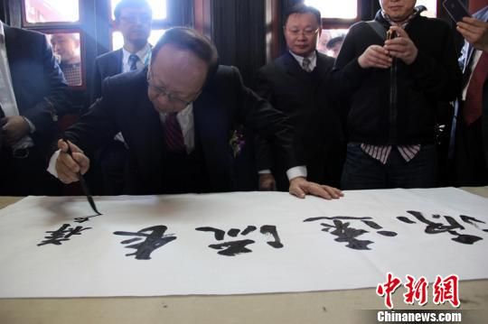 圖為蔣孝嚴(yán)在蔣氏故居題字“源遠(yuǎn)流長(zhǎng)”。 林波 攝