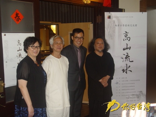 左1:北京市文化局副局長王珠;左2:臺灣著名藝術家林谷芳;左3:臺北市文化局局長劉維公;左4:大陸古琴藝術家王鵬(你好臺灣網 圖)