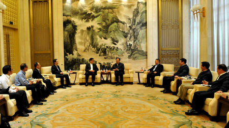 吳俊億代表臺灣企業家講話。他表示,湖北發展態勢好、后勁足、潛力大,下一步將在文化創意產業、新能源電動車、食品深加工等領域加強與湖北的合作。省政府秘書長王祥喜,省委副秘書長、省臺辦主任劉凱春參加會見。