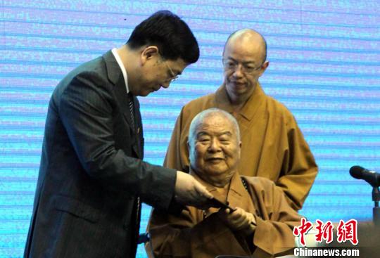 在隨后舉行的受聘儀式上,趙躍宇為星云大師頒發聘書、佩戴校徽。趙躍宇說,星云大師以望九之年受聘湖南大學名譽教授,將成為該校學術生活的一件盛事,為湖南大學扎根中國辦好具有中國特色的高水平大學增添福慧、廣結善緣。