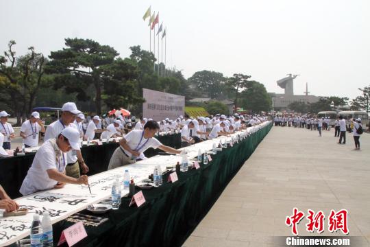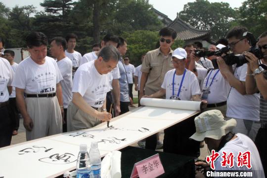 全國(guó)政協(xié)常委、中國(guó)書法家協(xié)會(huì)副主席、人民畫報(bào)書畫院院長(zhǎng)蘇士澍在致辭中稱,海峽兩岸120位書法家走進(jìn)甲午戰(zhàn)爭(zhēng)博物院活動(dòng)是海峽兩岸民間紀(jì)念甲午戰(zhàn)爭(zhēng)120周年的重要活動(dòng)之一,它以同書長(zhǎng)卷、墨祭國(guó)殤的形式表達(dá)了兩岸同胞共同的家國(guó)情懷、共同的精神訴求、共同的文化擔(dān)當(dāng)。