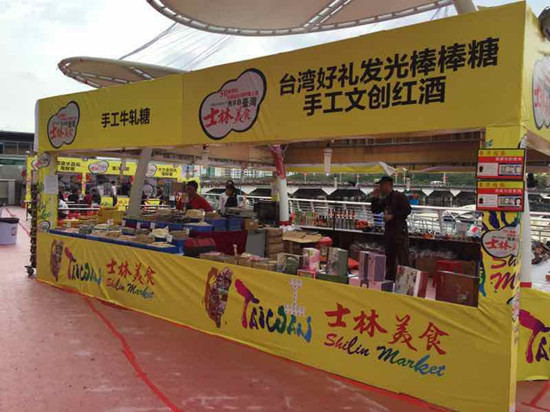 圖為 鴻洲廣場上琳瑯滿目的臺灣美食——牛軋?zhí)恰舭籼?/font>
