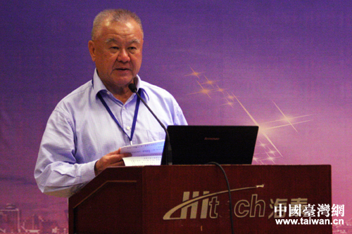 臺(tái)灣工商協(xié)進(jìn)會(huì)理事長(zhǎng)、臺(tái)灣玻璃集團(tuán)董事長(zhǎng)林伯豐出席交流會(huì)并致辭。(中國(guó)臺(tái)灣網(wǎng) 張潔 攝)
