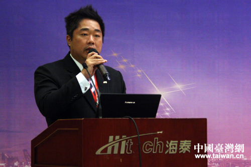 臺(tái)灣青商總會(huì)會(huì)長(zhǎng)、健統(tǒng)實(shí)業(yè)股份有限公司總經(jīng)理郭倫豪發(fā)言。(中國(guó)臺(tái)灣網(wǎng) 張潔 攝)