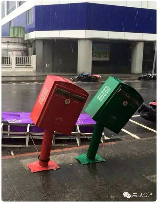 臺北市南京龍江路口附近的兩個郵筒,不敵蘇迪羅十七級暴風吹襲,一夜之間頭歪腰斜。一瞬間,海峽兩岸的人民震驚了,只能說臺風太可怕。