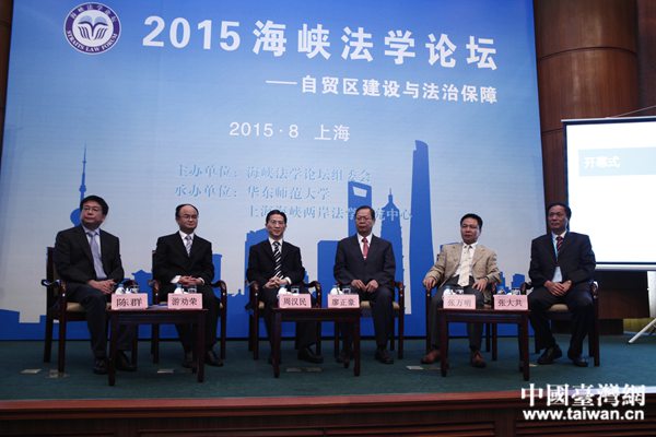 中國臺灣網(wǎng)8月19日迅。ㄓ浾 尹賽楠)19日,以“自貿(mào)區(qū)建設(shè)與法治保障”為主題的第十三屆海峽法學論壇在華東師范大學學術(shù)交流中心報告廳隆重舉行。本屆論壇由上海海峽兩岸法學研究中心承辦,來自兩岸三地的法學專家及法律實務(wù)界人士代表共210余人參加了論壇。