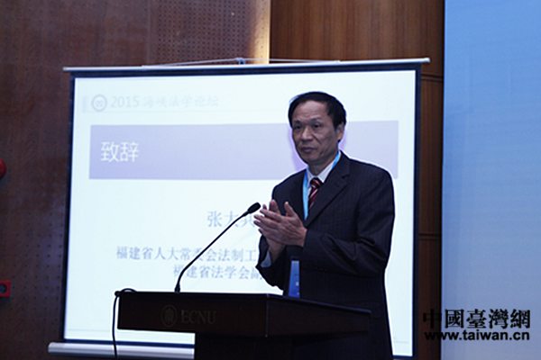 福建省人大常委會法工委主任、省法學會副會長張大共致辭。(中國臺灣網(wǎng) 尹賽楠 攝)