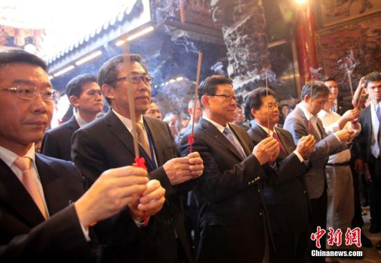 11月30日,海峽兩岸關系協會會長陳德銘率海協會交流團抵臺,隨即赴臺中大甲鎮瀾宮參訪。中新社記者 陳小愿 攝