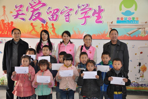 婦聯(lián)會一行與昭化區(qū)梅樹小學(xué)資助學(xué)生合影。