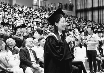 位于新北市的淡江大學舉行的畢業典禮上,來自福建廈門的大陸學生洪纓在發言。新華社記者 才 揚攝