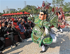 兩岸新一代創(chuàng)意設(shè)計(jì)周活動(dòng)開幕式邀請(qǐng)了臺(tái)灣藝陣新九天民俗創(chuàng)藝團(tuán)來熱場,悠揚(yáng)的音樂、奇幻的燈光、專業(yè)的表演讓觀眾時(shí)而置身于原始森林,時(shí)而游弋驚濤駭浪,時(shí)而徜徉于花海瑤池,時(shí)而搏擊于遠(yuǎn)古戰(zhàn)場。心中的情緒隨著音樂的氣氛越散越濃,充分展示了音樂與雜技的完美結(jié)合兼具力量與柔美,給人以驚險(xiǎn)刺激的感官,為觀眾帶來嘆為觀止的藝術(shù)享受。在音樂民俗文化分享傳播的同時(shí),這種熱情能擴(kuò)散到兩岸同胞之間。