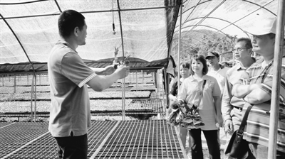 景文德向記者介紹花苗生長情況。本報記者 馮學知攝