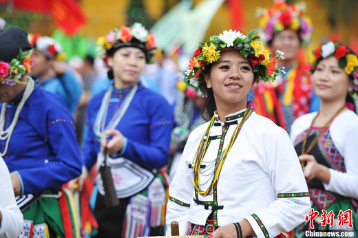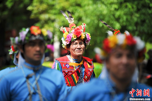 4月30日,2011中國昆明國際文化旅游節昆明狂歡節在春城昆明開幕。來自寶島臺灣的原住民族原舞者表演隊精彩亮相,受到游客的喜愛。中新社發 劉冉陽 攝