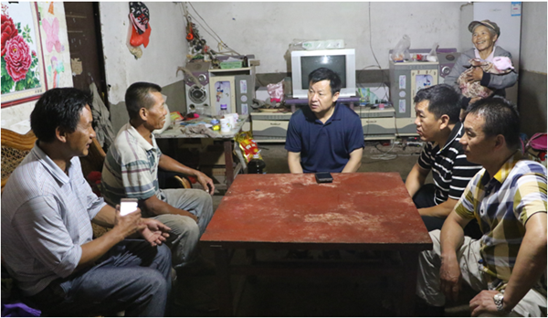 省委臺辦副主任崔冰成(左三)深入結對幫扶戶家中調研