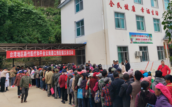 臺灣路竹醫療和平會為墨江民眾義診,并為基層醫務人員進行業務培訓。圖為排著長隊等候診療服務的民眾
