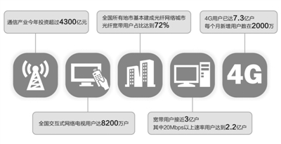 苗圩介紹說,今年,通信產(chǎn)業(yè)完成投資超過4300億元,全國(guó)所有地市基本建成光纖網(wǎng)絡(luò)城市,光纖寬帶用戶占比達(dá)到72%,4G用戶突破7億戶,全國(guó)IPTV(交互式網(wǎng)絡(luò)電視)用戶已達(dá)8200萬戶;全國(guó)固定寬帶平均接入速率達(dá)到2015年的2倍;新增3個(gè)互聯(lián)網(wǎng)骨干直連點(diǎn),網(wǎng)間帶寬新擴(kuò)容950G。