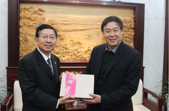 臺旅會北京辦事處主任楊瑞宗贈送臺灣伴手禮給浙江旅游協會趙金勇會長。