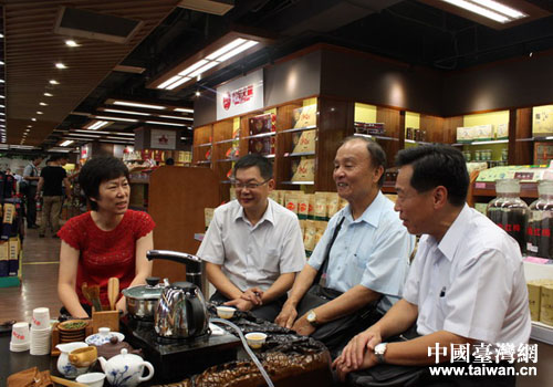 杭州市臺辦主任梁建華與南投縣農(nóng)會的相關(guān)負(fù)責(zé)人親切交談。(圖片來源:杭州市臺辦)